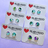 This collection is inspired by the beautiful Freesia flowers. Using lilac, purple, green, teal, light blue and touches of gold make these stunning hand painted acrylic earrings so gorgeous.